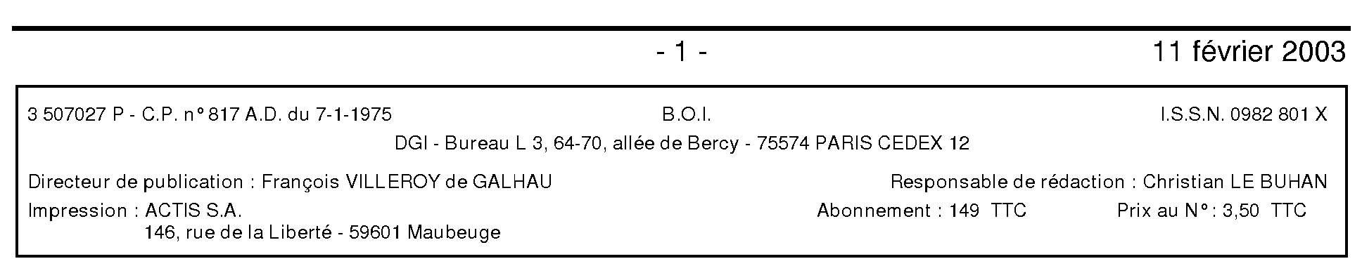 B.O.I. N° 27 du 11 FEVRIER 2003