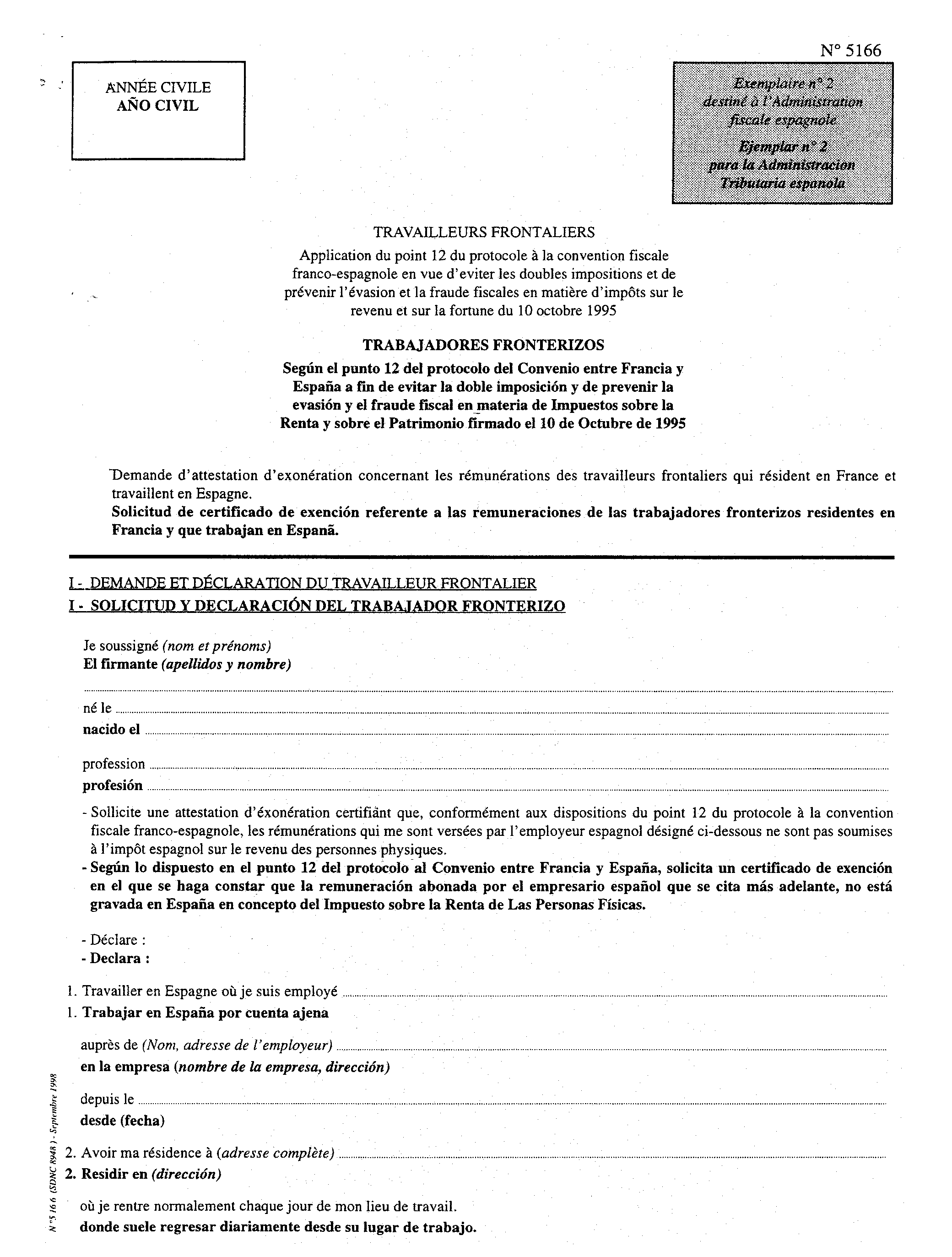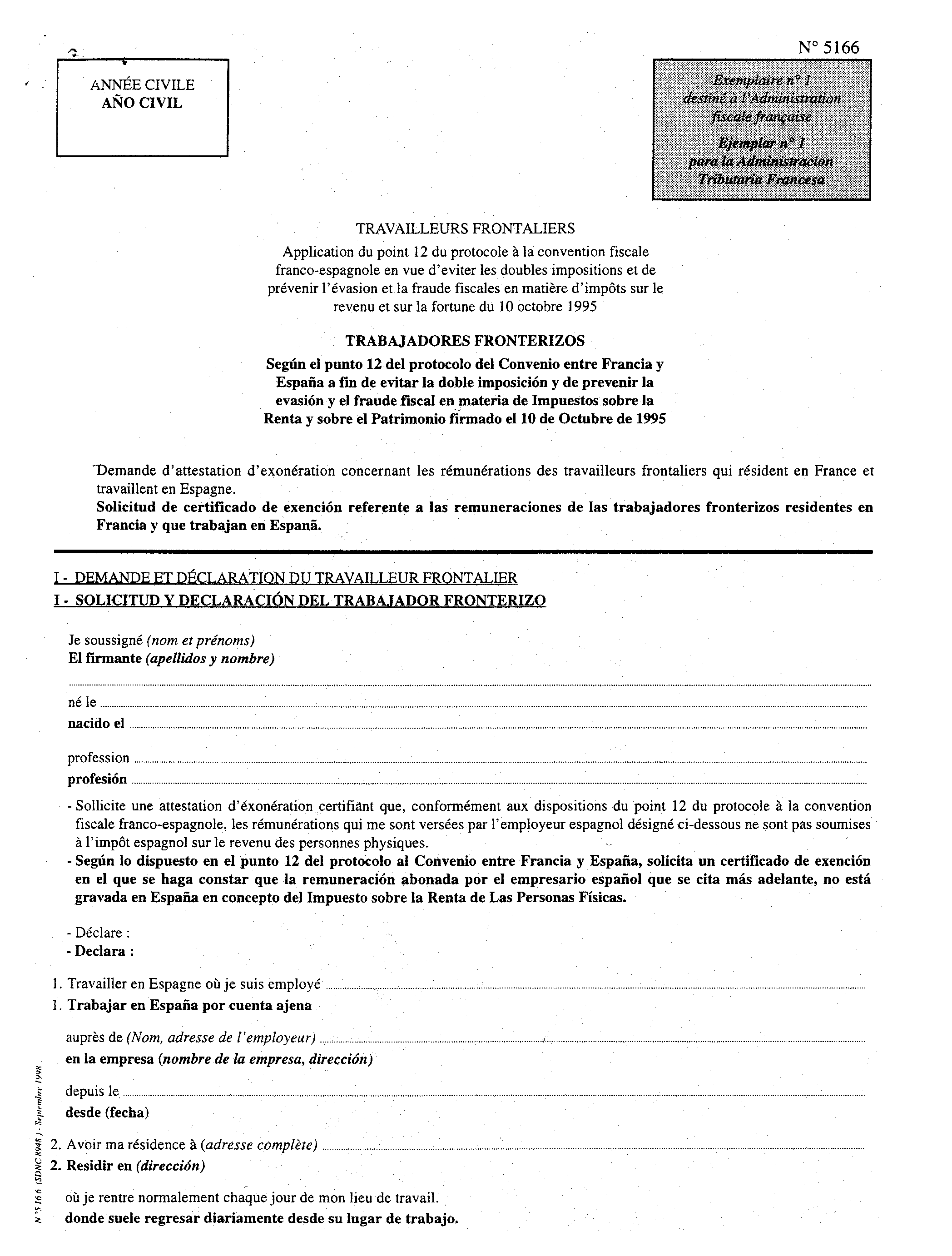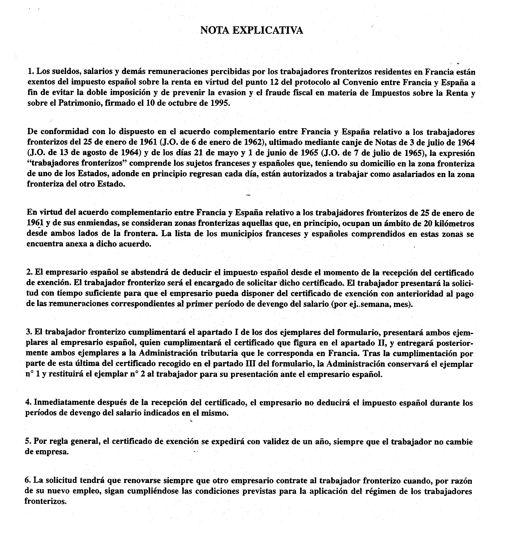 CONCERNANT LES MODALITES D'APPLICATION DE LA CONVENTION FRANCO-ESPAGNOLE DU 10 OCTOBRE 1995