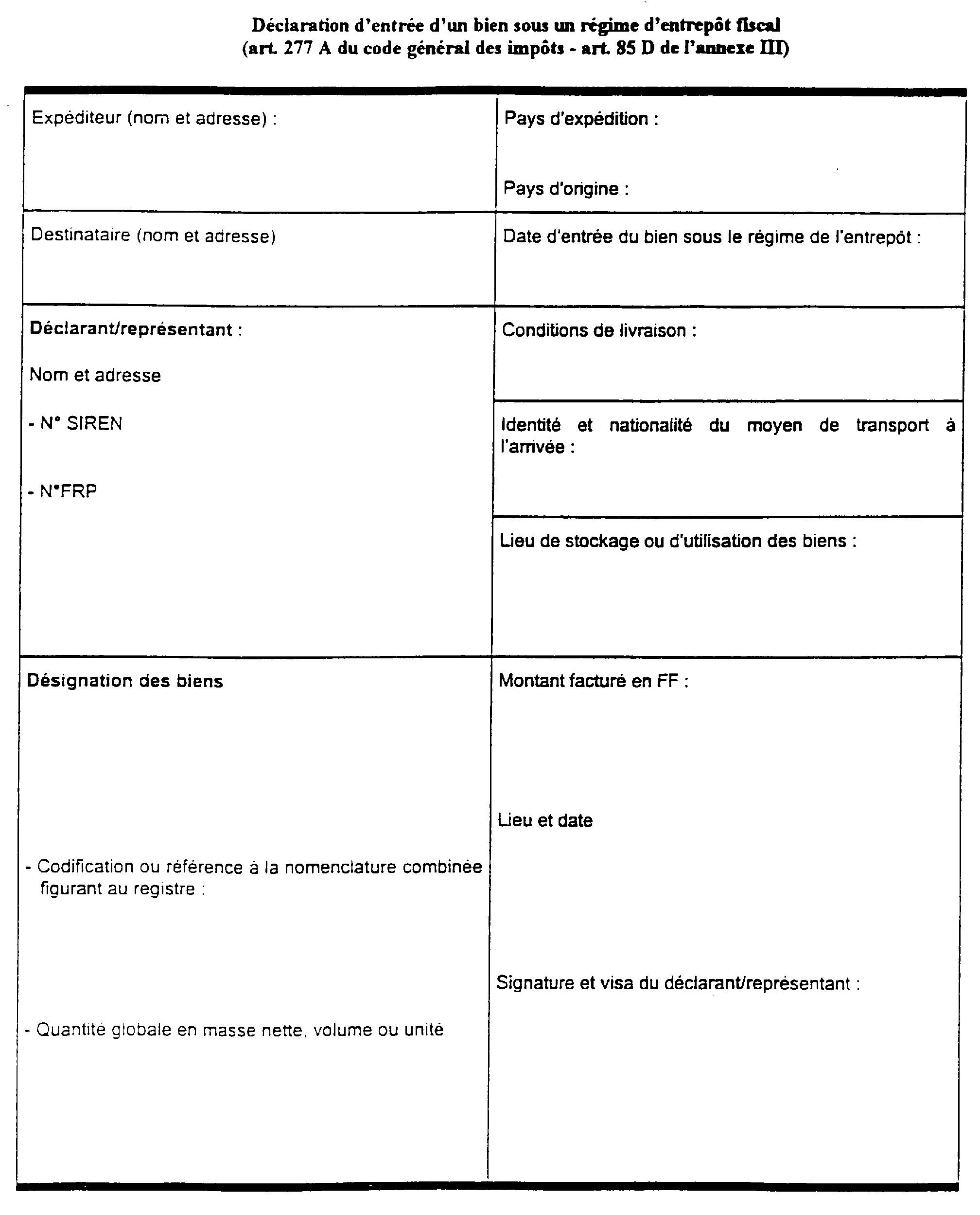 3   Même solution s'il s'agit d'une importation ou d'une acquisition intracommunautaire. En cas d'importation, le bien a fait l'objet d'une mise en libre pratique avant le placement sous entrepôt