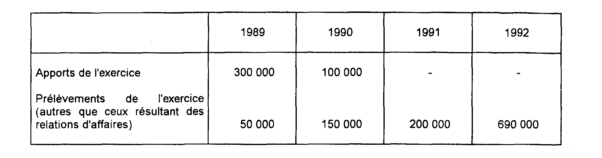. Au cours de chaque exercice, le siège étranger a effectué les apports et prélèvements suivants :