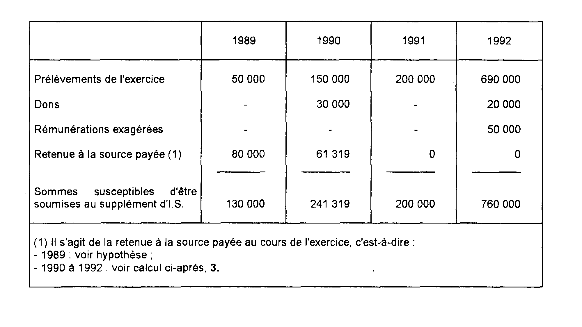 . La retenue à la source payée en 1989 s'élève à 80 000 F.