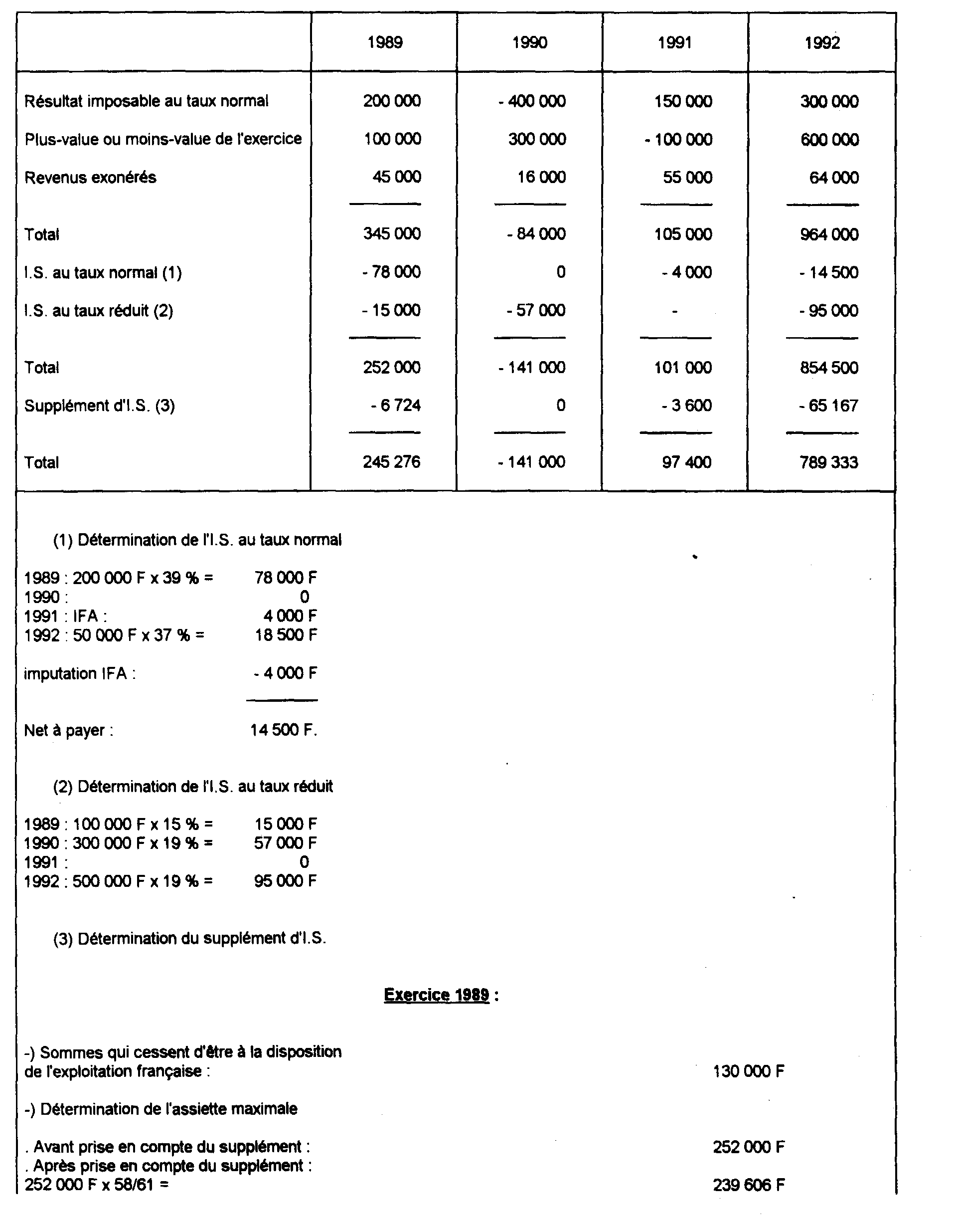 - en 1992 : (101 000 F - 3 600 F - 141 000 F) x 25 % = 0.