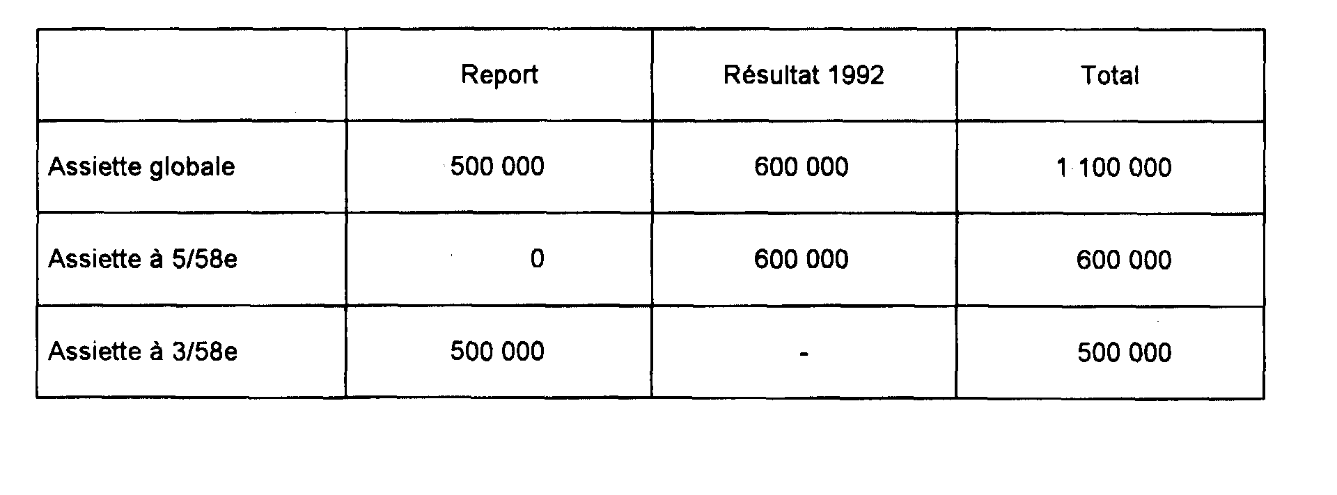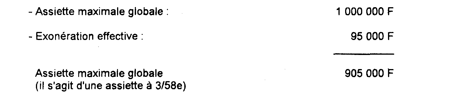 Assiette maximale à 3/58e : 1 000 000 F