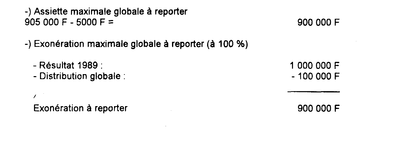 - en 1990 : (252 000 F - 6 724 F) x 25 % = 61 319 F