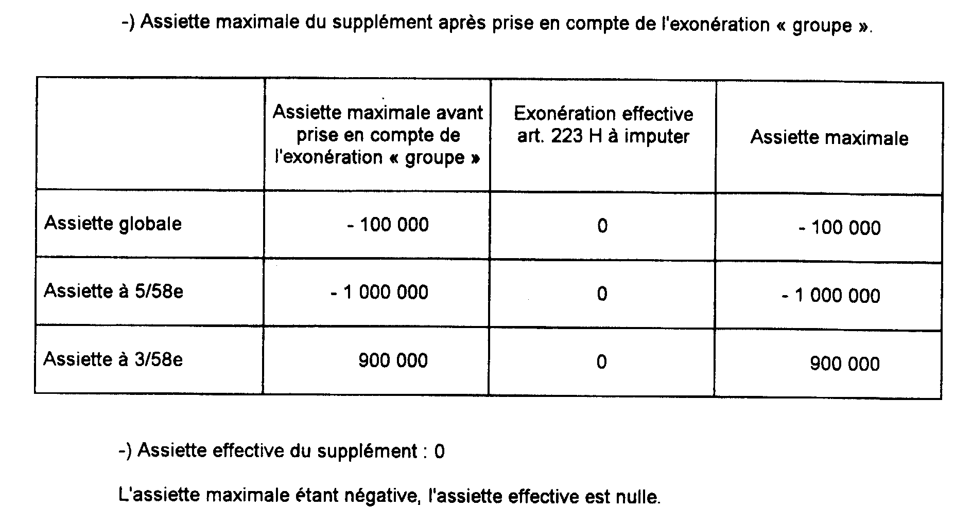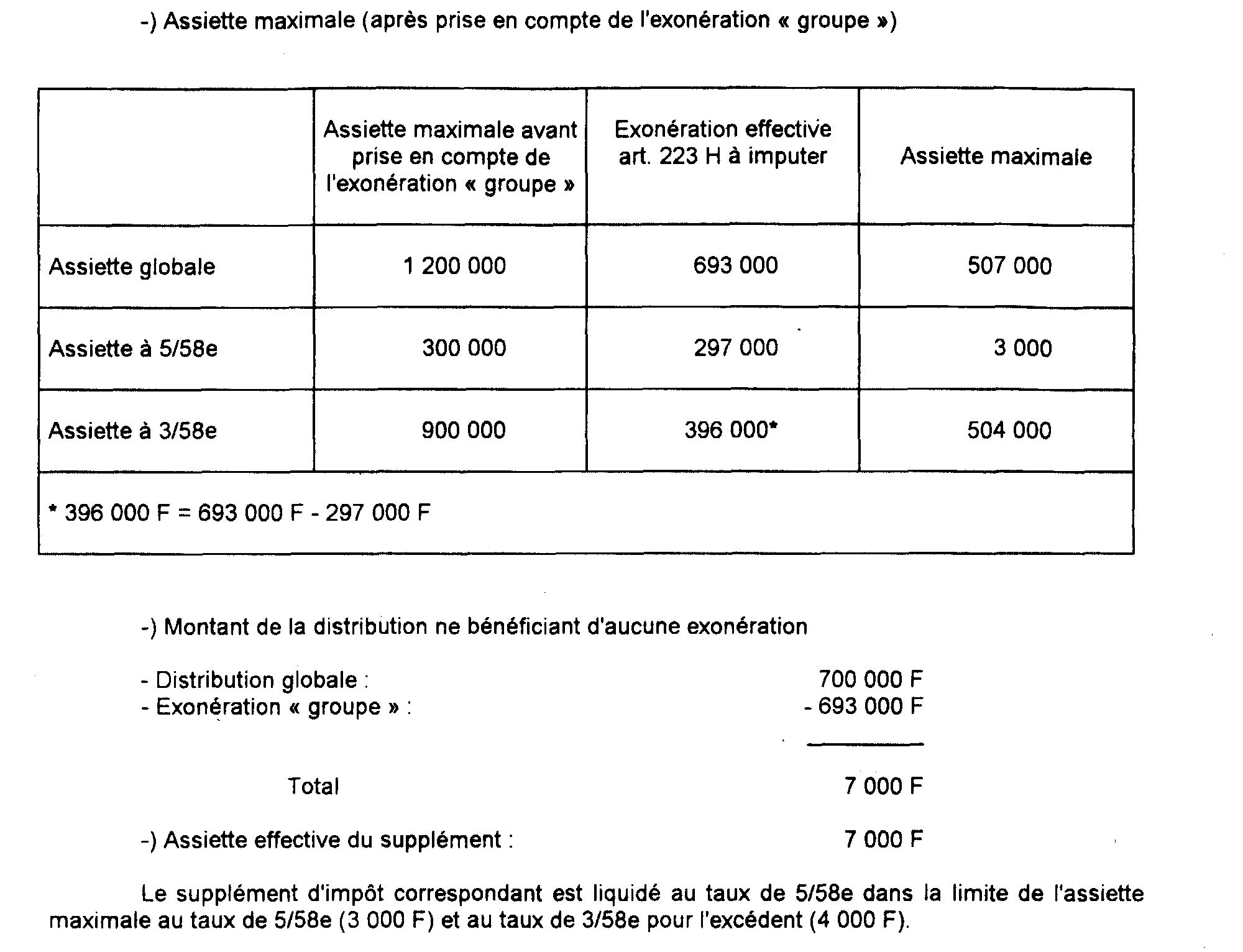 c. Détermination de l'assiette maximale du supplément (après prise en compte de l'exonération « groupe »).