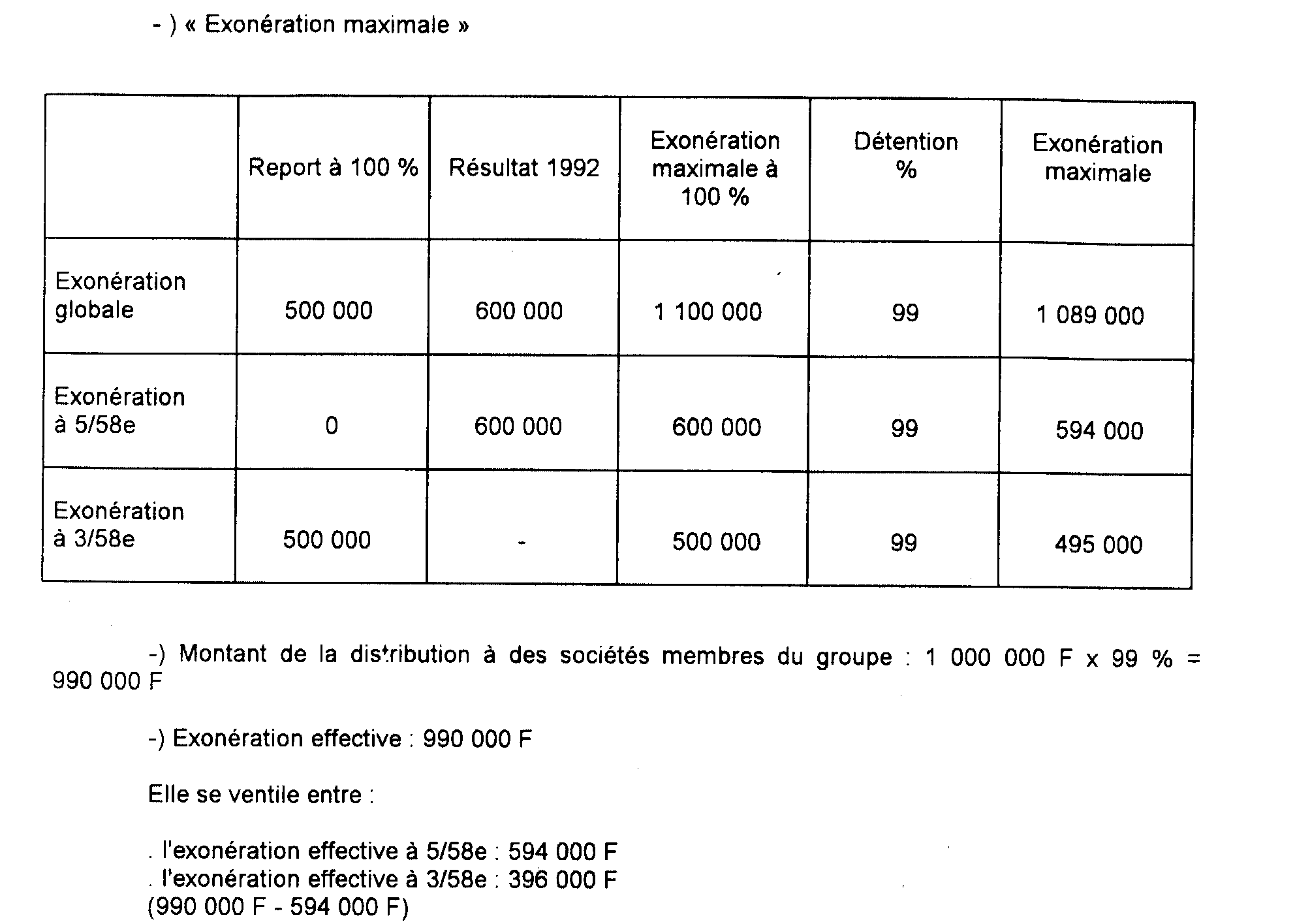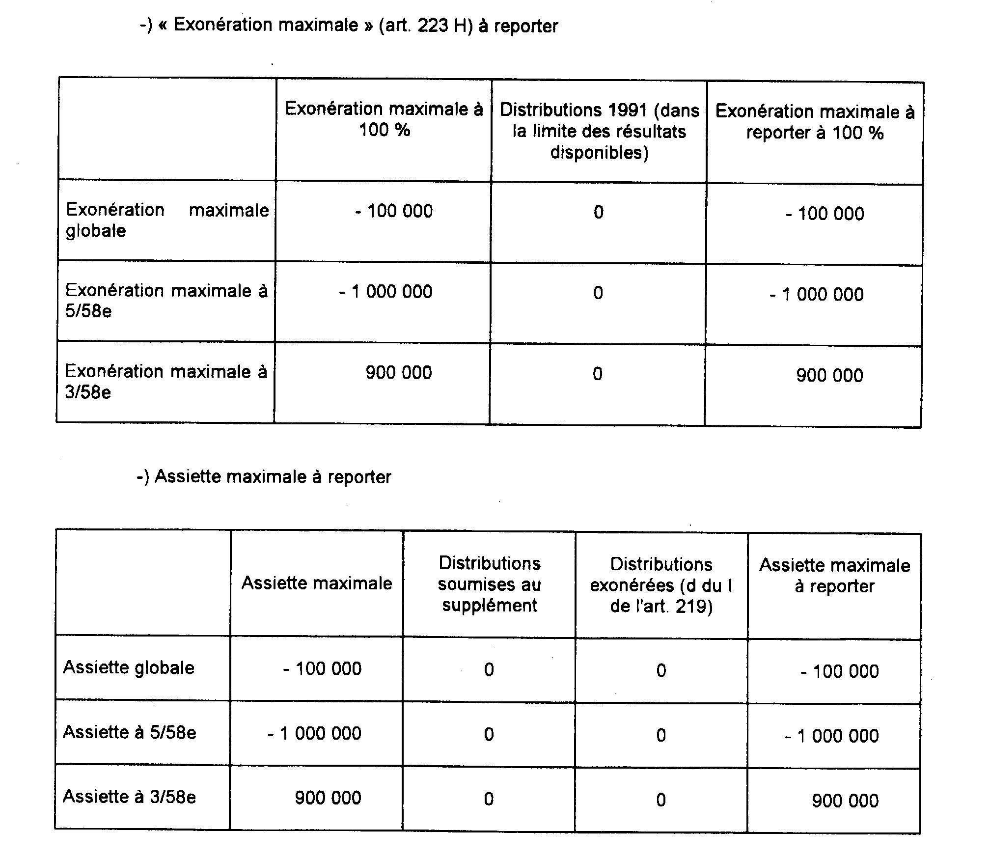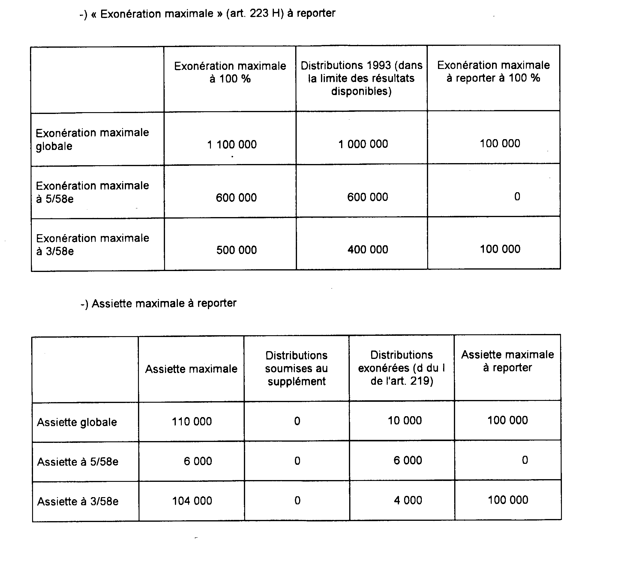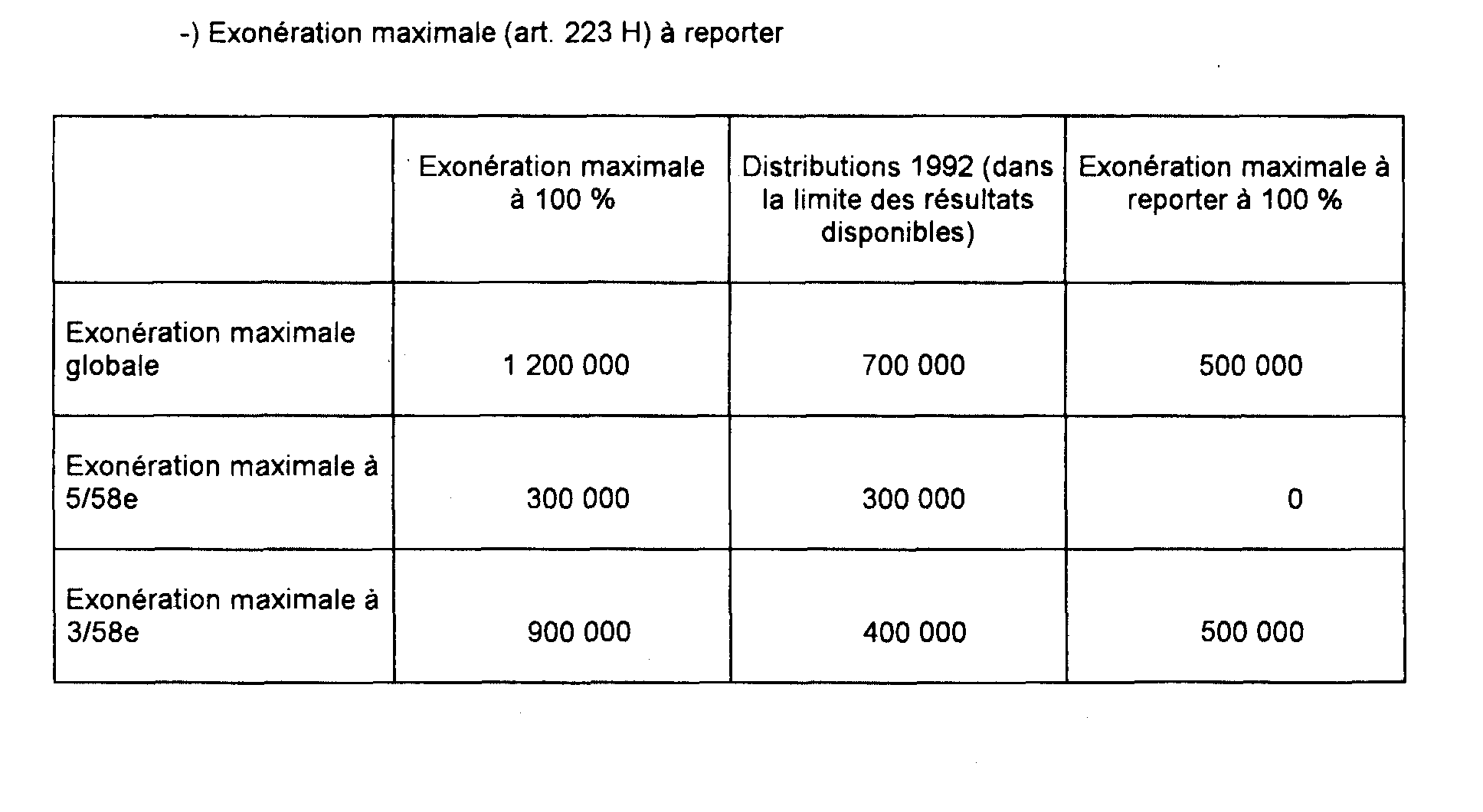 b. Détermination de l'exonération maximale prévue à l'article 223 H.