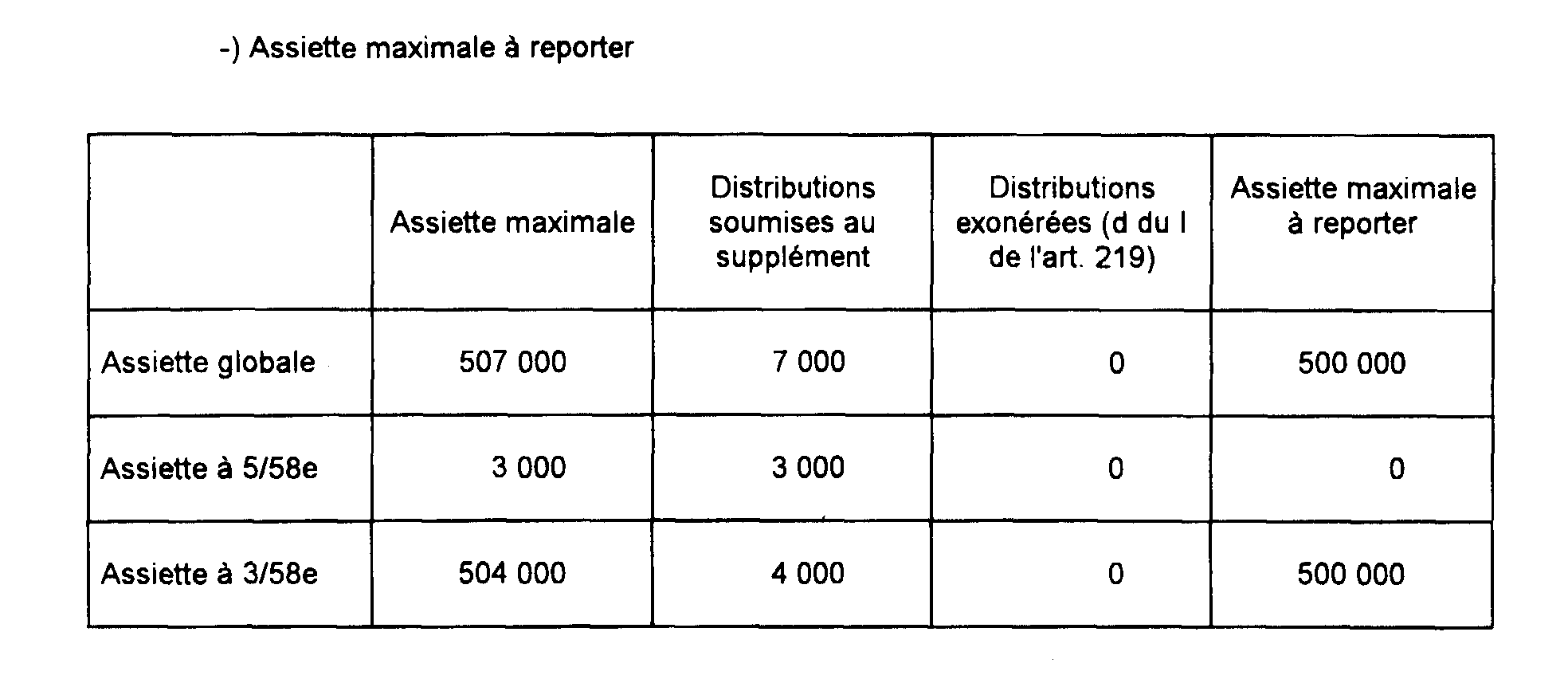 a. Détermination de l'assiette maximale du supplément d'impôt (avant prise en compte de l'exonération « groupe »).