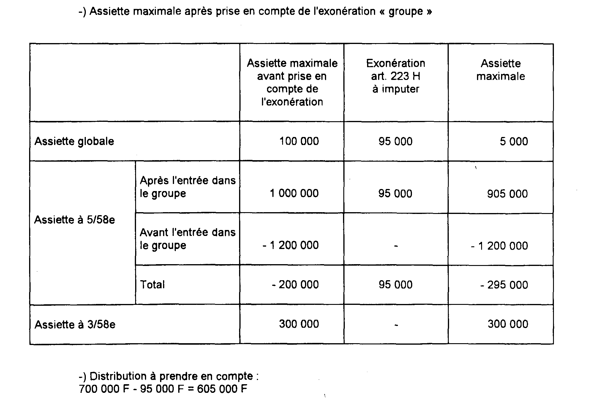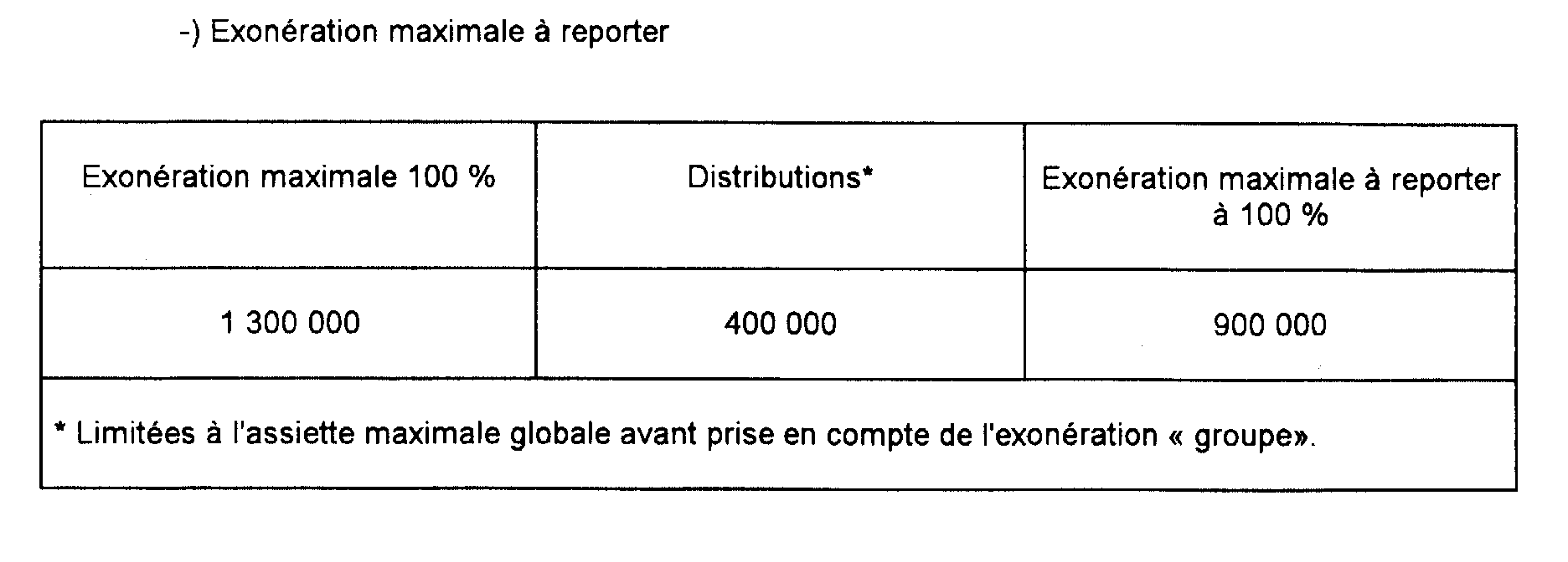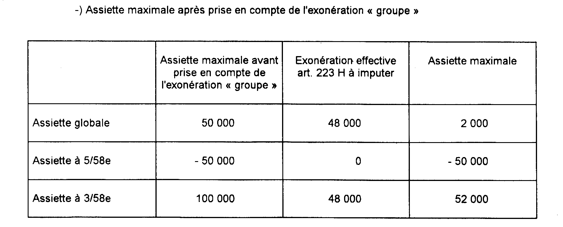 a. Détermination de l'assiette maximale avant prise en compte de l'exonération « groupe ».