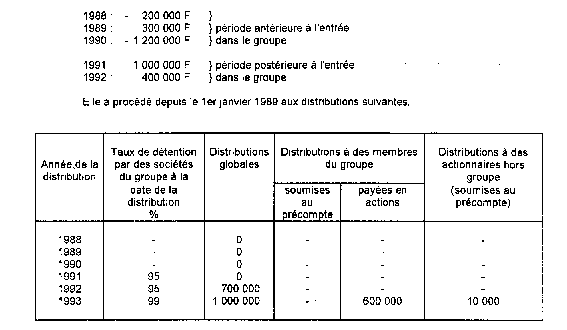 3. Distribution effectuée en 1991 (600 000 F).