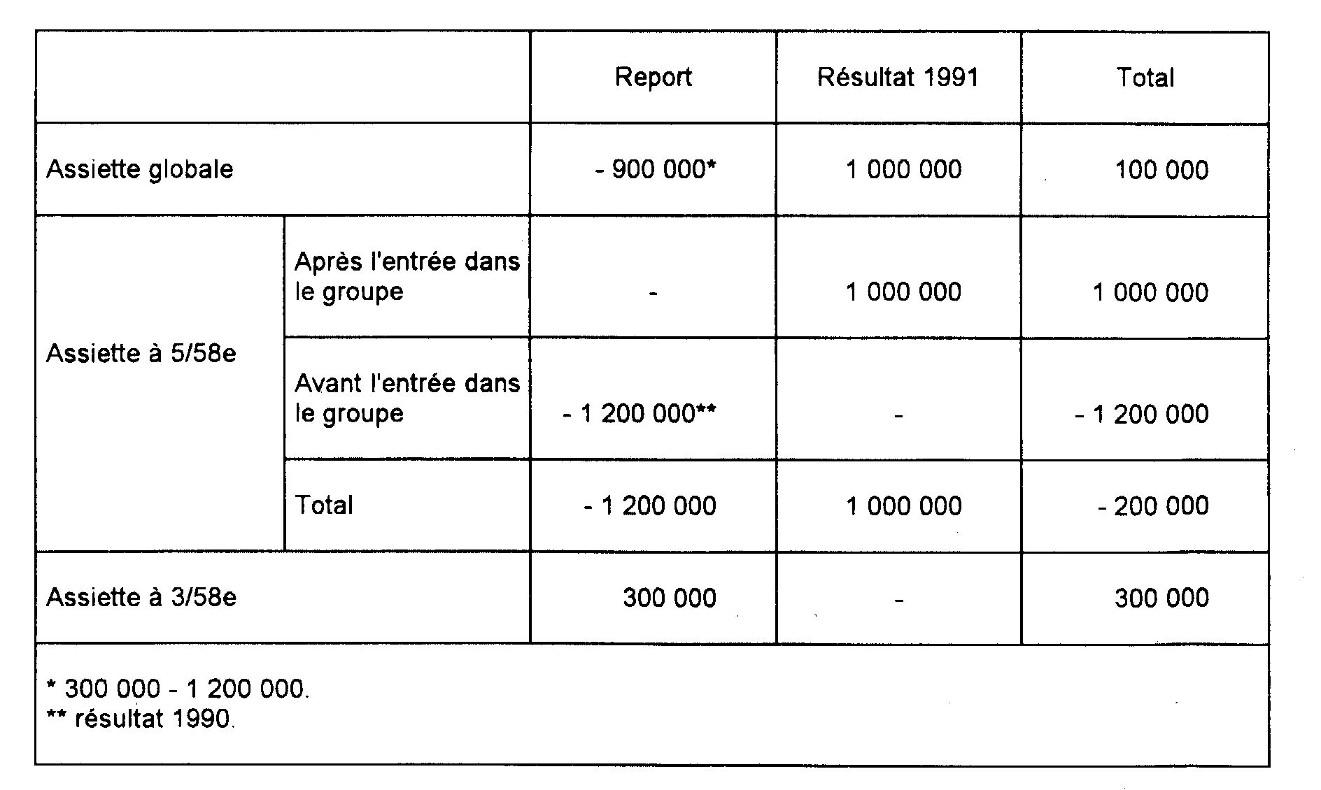 Une société dont l'exercice coïncide avec l'année civile est entrée dans un groupe à compter de son exercice ouvert le 1er janvier 1991. Elle a réalisé les résultats comptables suivants :