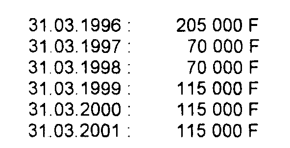Le montant total des aides, autres que le crédit d'impôt, obtenues au titre des exercices clos au cours des années 1996 à 2000, soit 575 000 F, correspond à 5 % ESN.